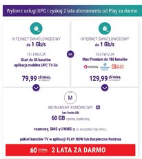 Wybierz ofertę Play i zyskaj 2 lata internetu od UPC za darmo