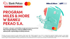 Bank Pekao S.A. wzbogacił swoją ofertę o możliwość zbierania mil w największym programie lojalnościowym w Europie – Miles & More. To efekt strategicznej współpracy banku z Polskimi Liniami Lotniczymi LOT. Dzięki niej klienci Pekao mogą gromadzić mile za transakcje dokonywane kartami kredytowymi – Kartą Kredytową z Żubrem oraz kartami kredytowymi bankowości prywatnej. Zgromadzone mile można wymienić na: bilety lotnicze, podwyższenie klasy podróży samolotem, rezerwację hotelu, wynajem samochodu oraz inne nagrody.