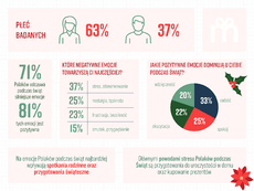 Z badania “Sztuka przeżywania Świąt według Polaków” zrealizowanego przez serwis Prezentmarzeń na próbie 1328 respondentów wynika, że aż 73% Polaków odczuwa silniejsze emocje podczas świąt. Wśród badanych 37% Polaków wskazuje na stres związany z przygotowaniami do świąt. Dla 39% ankietowanych, największym źródłem stresu podczas świąt jest przygotowanie uroczystości w domu. 30% respondentów deklaruje, że odreagowuje negatywne emocje robiąc zakupy i wybierając prezenty. Traktując tę aktywność jako sposób na poprawę nastroju oraz symboliczne wprowadzenie się w świąteczny nastrój.